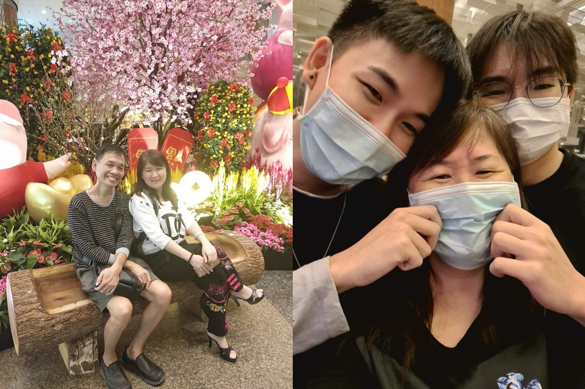 SCS Welfare Aid Assistance beneficiary Mr Ng Choon Teck with wife and two sons.