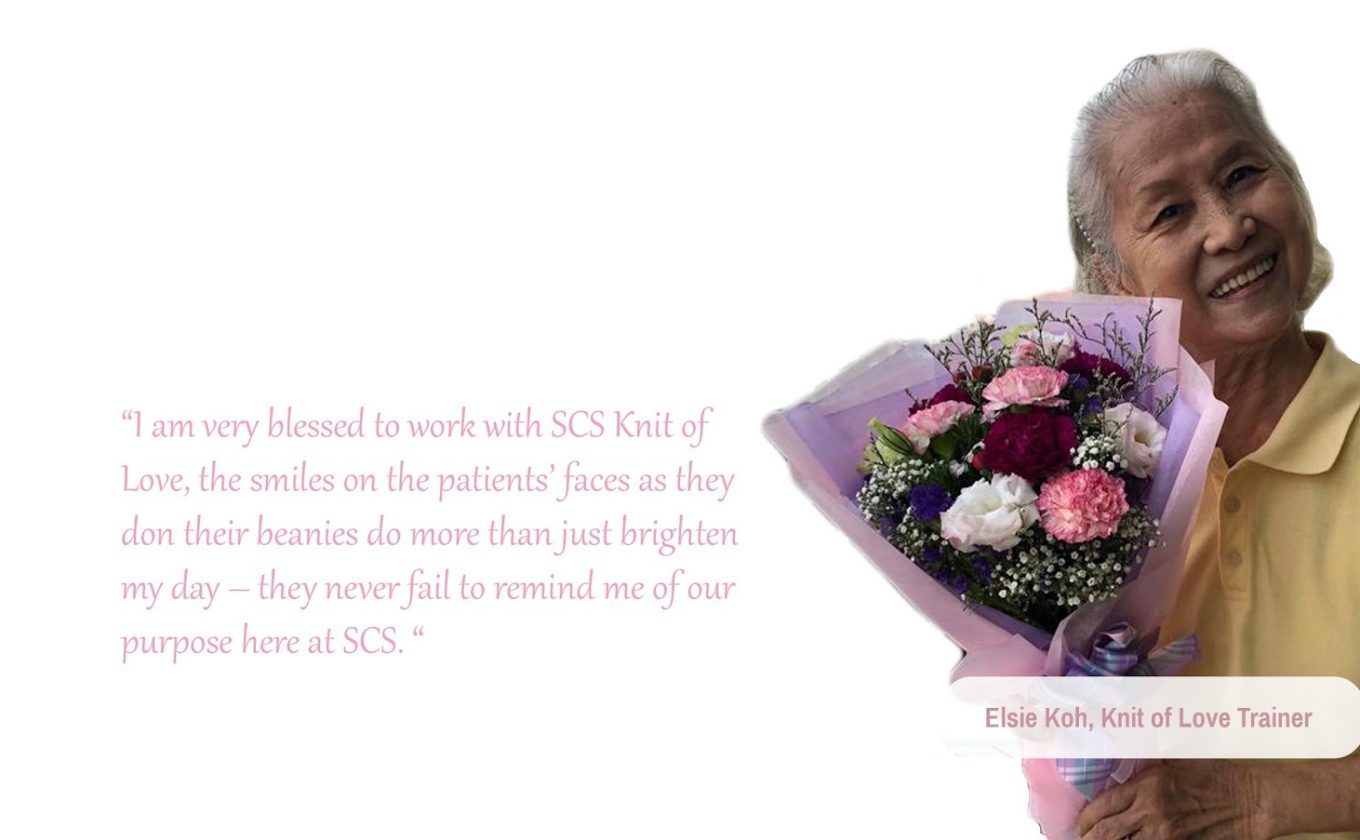“I am very blessed to work with SCS Knit of Love, the smiles on the patients’ faces as they don their beanies do more than just brighten my day, they never fail to remind me of our purpose here at SCS.’’ — Aunty Elsie.