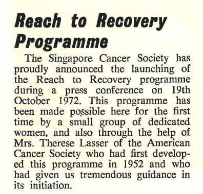 The Reach to Recovery Programme, a rehabilitation and support group for women who had undergone mastectomies, was established. The Cancer Research Fund was launched.